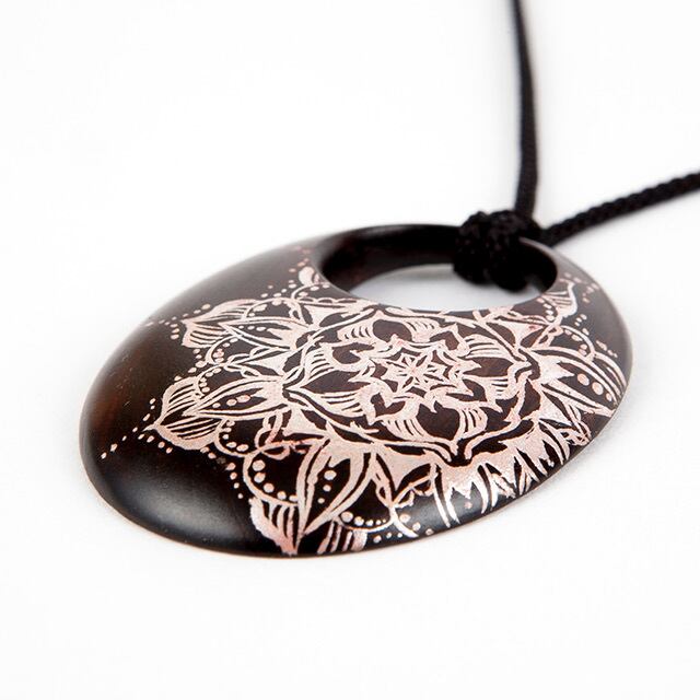 何度も擦り重ねた拭き漆ならではの光沢。そして手描きで繊細に描かれた曼荼羅。